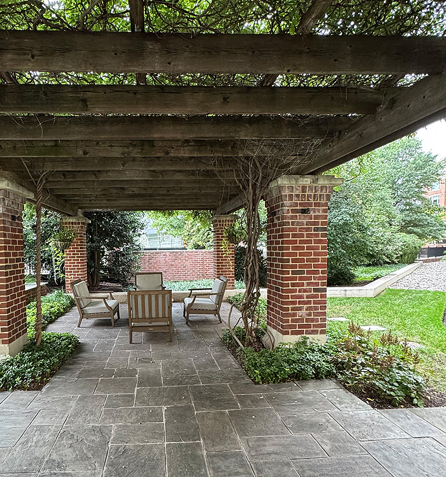 A tranquil retreat where residents can pause and enjoy the calming fountain and fresh air – perfect for unwinding between a workout and a swim.