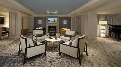 With multiple gathering areas, a grand piano, bar, fireplace and flat screen TV – perfect for parties or personal enjoyment.
