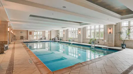 Relaxing indoor heated pool & hot tub. The locker rooms feature convenient changing areas, personal lockers, and rejuvenating saunas.